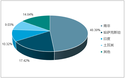 2017年我國鉻礦進口數(shù)量國別占比