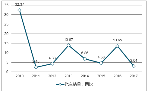2008年-2017年汽車產(chǎn)量同比變化(%)
