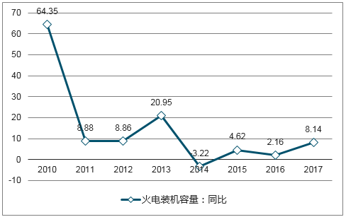 2009年-2017年國家電力火電裝機容量同比變化(%)